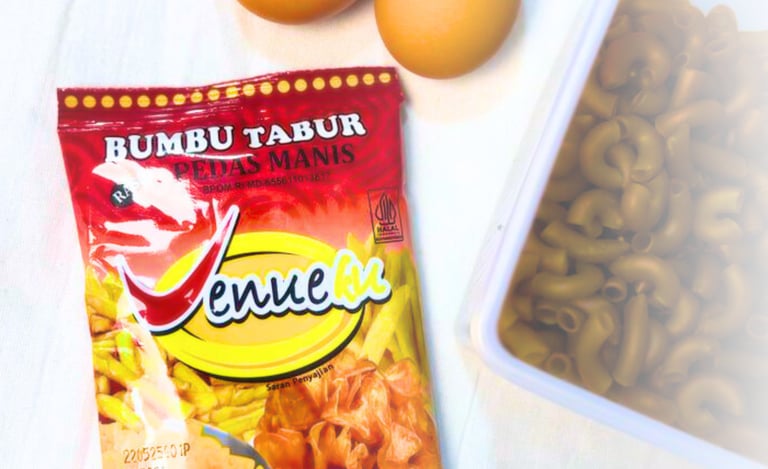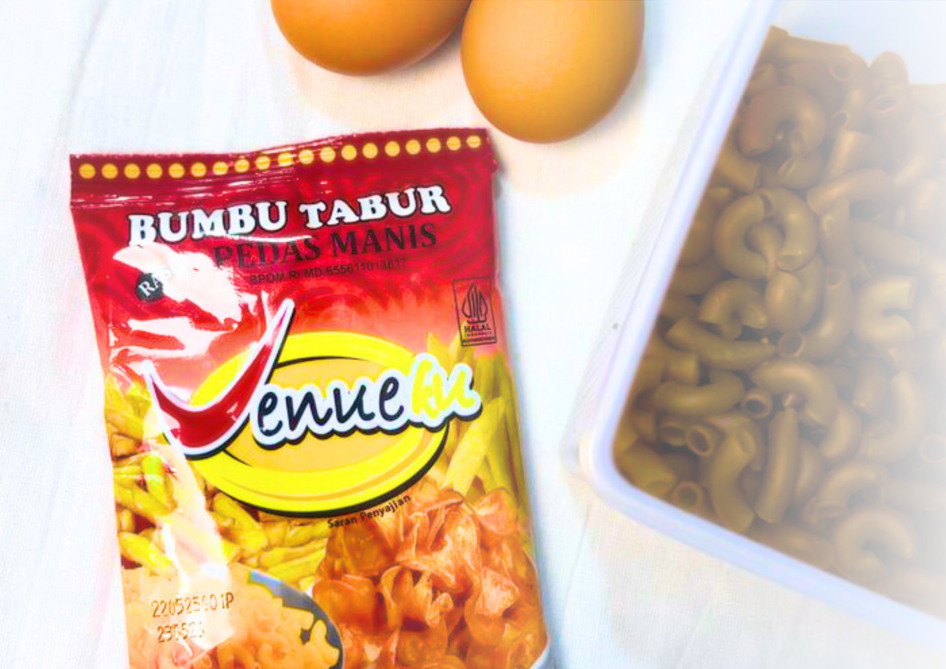 Panaskan sedikit minyak, kemudian goreng makaroni, tunggu hingga air dimakaroni menyusut